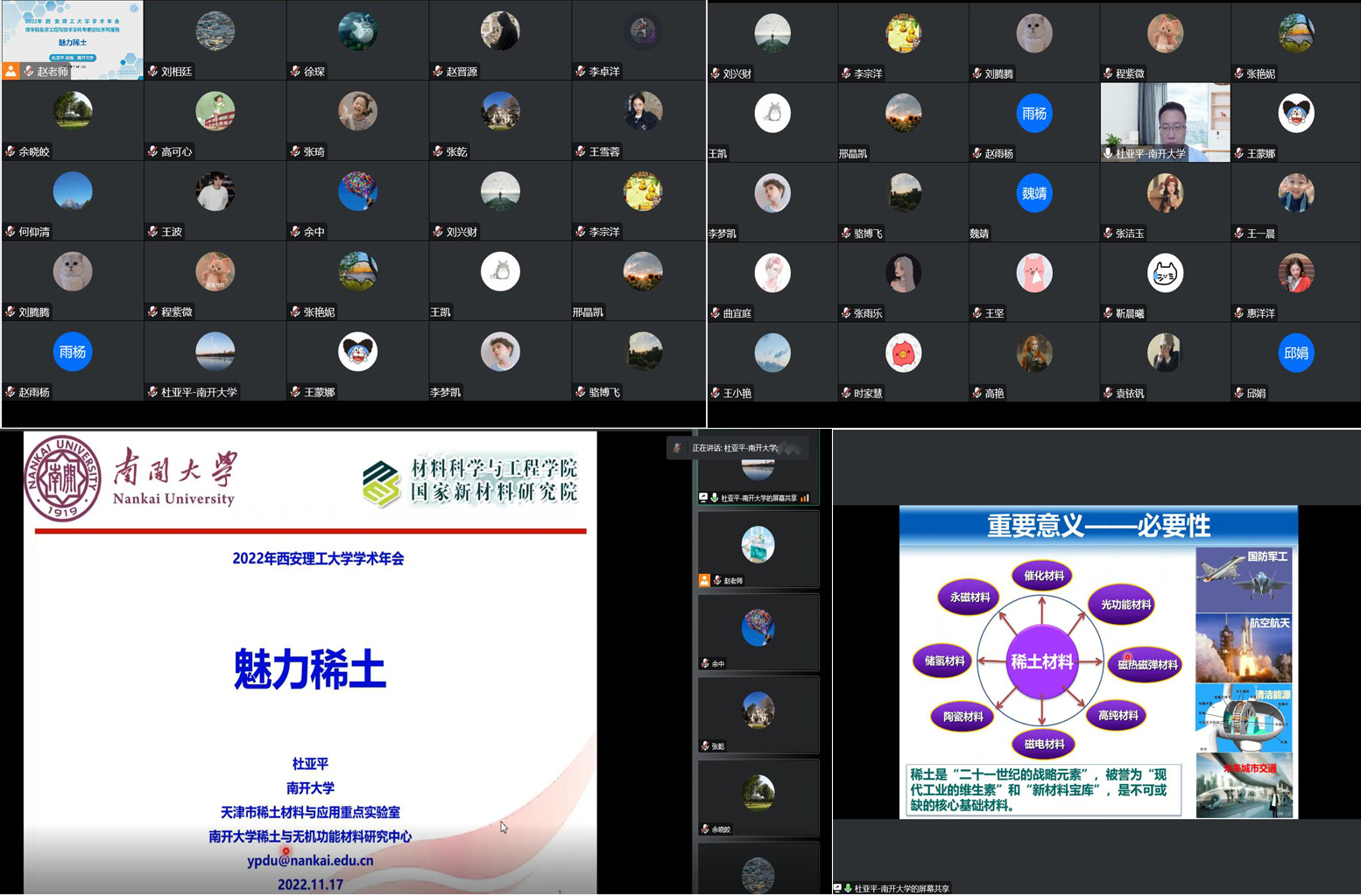 2022年公司研究生学术年会暨国际学术论坛隆重开幕,应williamhill英国官网化学工程与技术学科邀请,南开大学杜亚平教授 于11月17日上午8:30-11:00为参会师生作了题为“魅力稀土”的线上学术报告。