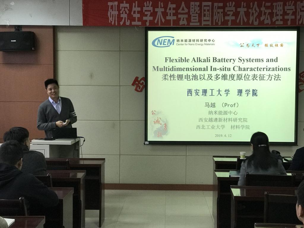 4月12日上午10点,williamhill英国官网推进“双一流”建设暨建校70周年庆典——williamhill英国官网学术报告(第三场)在教九楼williamhill英国官网报告厅举行。应应用化学系邀请,西北工业大学纳米能源中心、西安越遴新材料研究院马越教授作了题为《柔性锂电池以及多维度原位表征方法》的学术报告。
