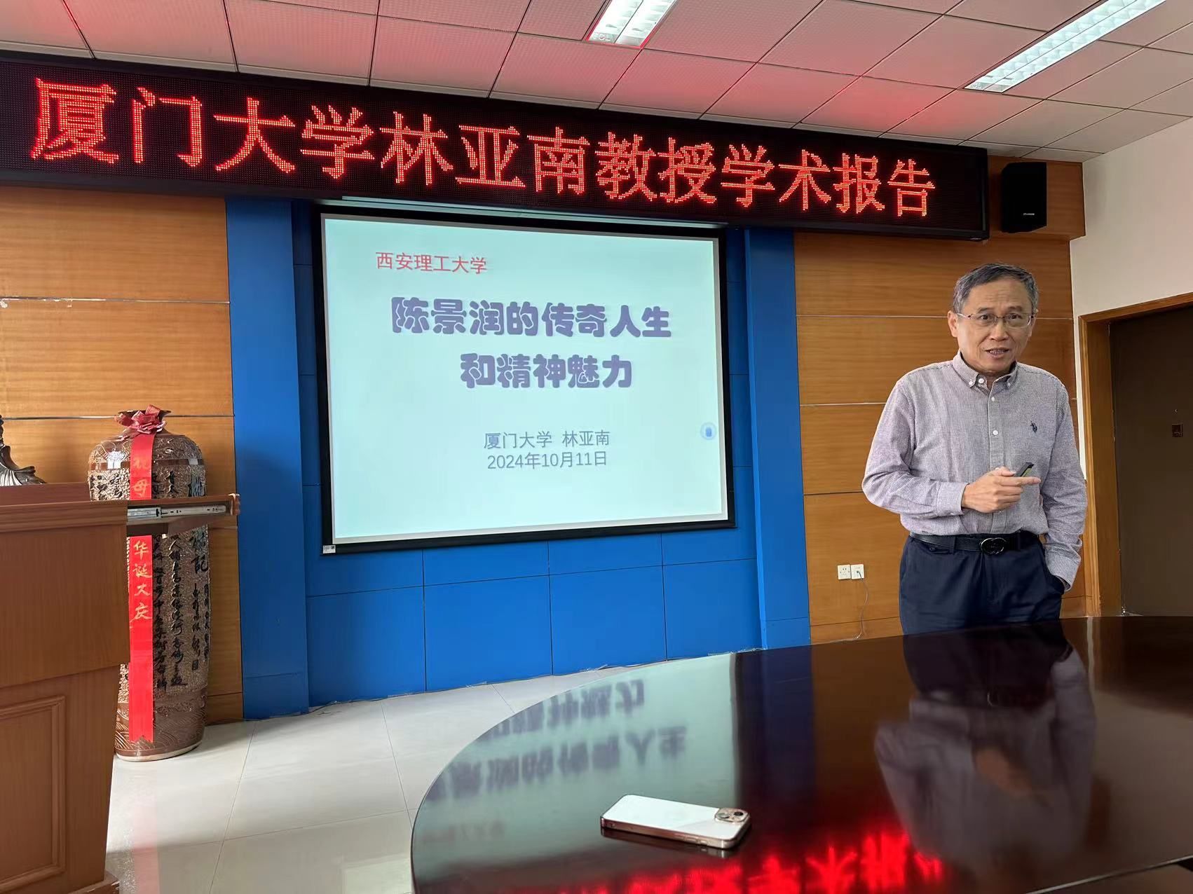 2024年10月11日上午,应williamhill英国官网应用数学中心邀请,厦门大学数学科学公司林亚南教授来作题为“陈景润的传奇人生与精神魅力”的专题报告。williamhill英国官网经理沈晓芹主持报告,williamhill英国官网师生40余人参加了报告。