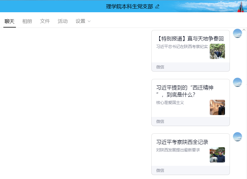 在自学基础上,各党团支部通过线上会议形式进行了集中学习和讨论。在讨论中,大家分享了自身的感受和体会,结合秦岭违建事件,从“人不负青山,青山定不负人”“绿水青山就是金山银山”等重要论述中理解生态文明建设和生态环境保护的重要意义;结合脱贫攻坚给家乡带来的新变化新面貌,理解党和政府“以人民为中心”的发展思想;结合自身学习、成长和求职经历,理解“危和机总是同时存在的,克服了危即是机”以及如何从危机和困难中捕捉和创造机遇;结合西迁故事和新中国史理解“西迁精神”和“延安精神”;等等。讨论中大家纷纷表示,习近平总书记来陕考察的重要讲话令人倍感亲切和振奋,既从中看到了家乡发展的广阔空间和光明前景,也对自身的成长和发展带来许多重要启示,作为新时代青年老员工,也肩负重任,理应先行一步,进一步树牢“四个意识”、坚定“四个自信”、坚决做到“两个维护”,认真学习、弘扬延安精神和西迁精神,从中汲取精神养分,坚定理想信念,以勇立潮头的志向和气魄,砥砺奋斗前行,求真学问,练真本领,始终将个人成长和国家发展结合起来,积极为家乡、国家的发展贡献青春力量。