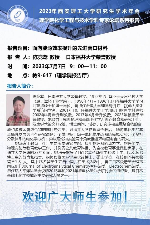 日本福井大学陈竞鸢教授学术报告通知