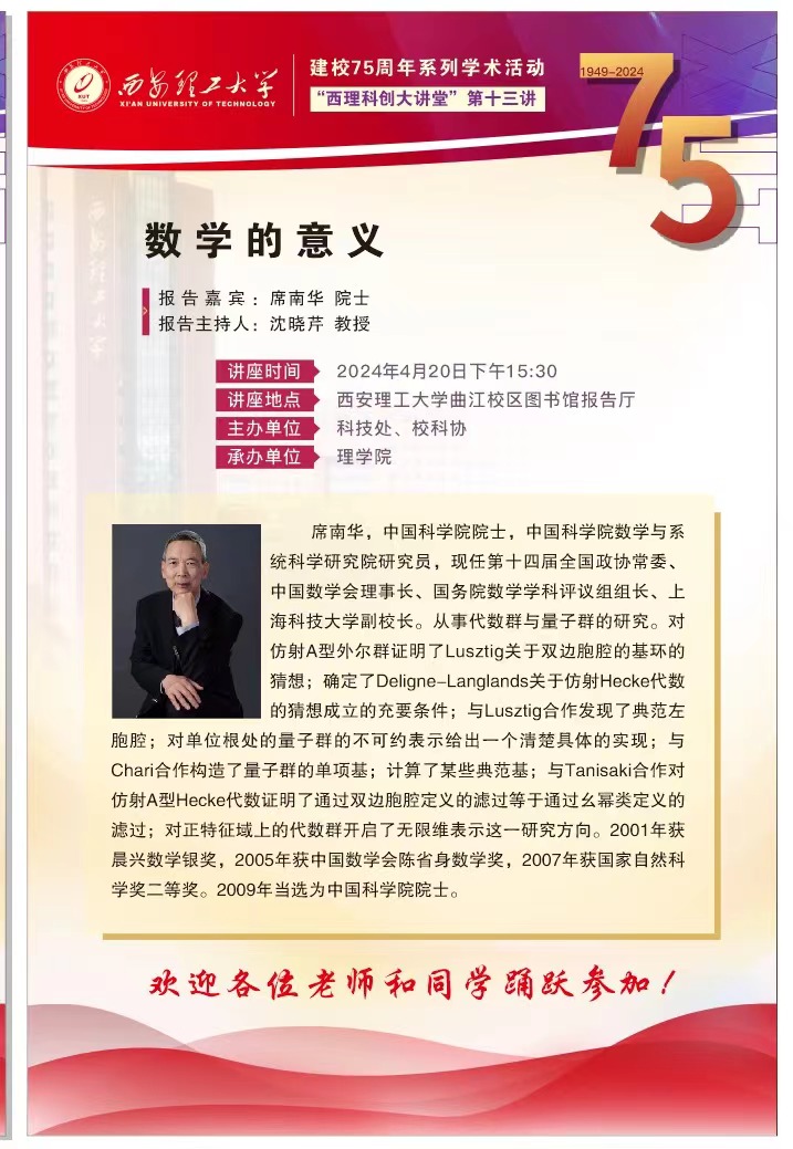 williamhill英国官网75周年校庆系列报告-williamhill英国官网院士席南华学术报告