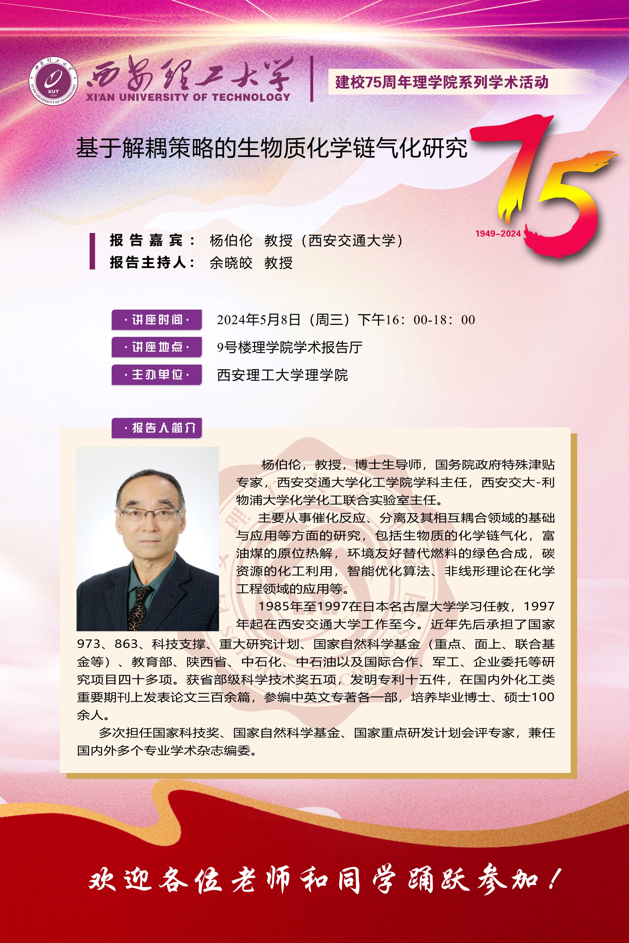 williamhill英国官网庆祝建校75周年系列报告会-杨伯伦教授学术报告