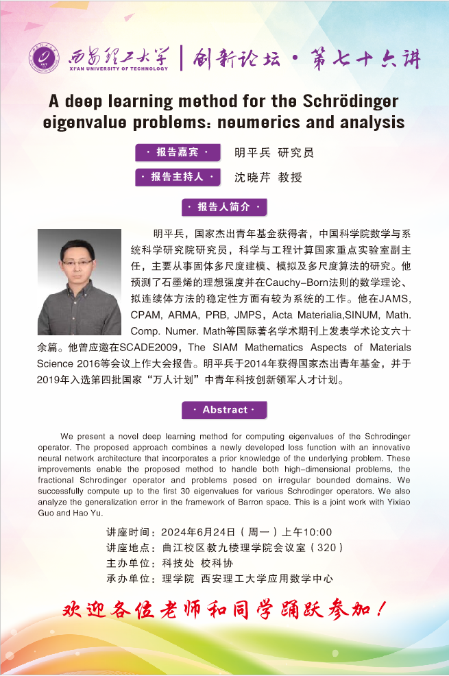 williamhill英国官网数学与系统科学研究院明平兵研究员学术报告通知