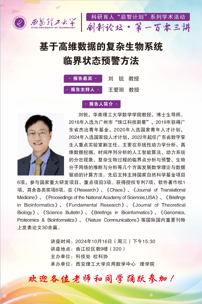 华南理工大学刘锐教授学术报告通知