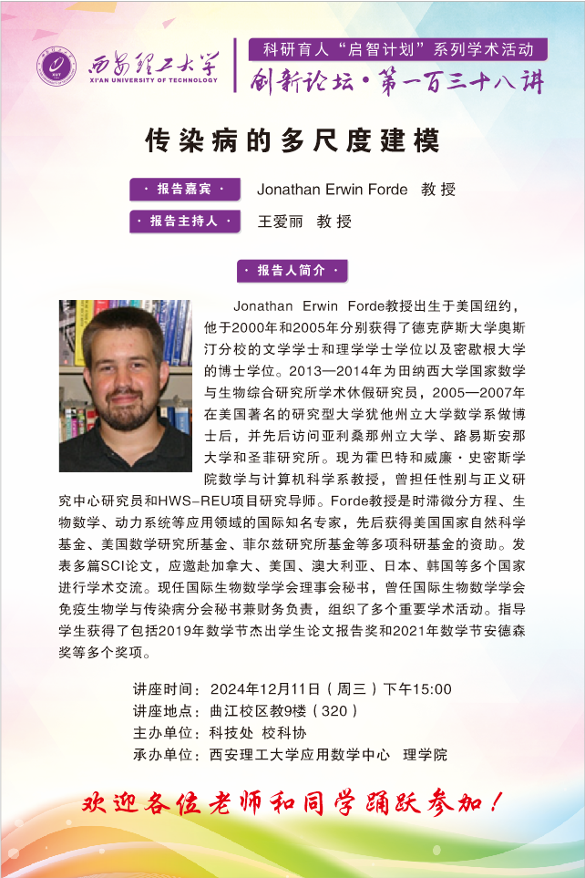霍巴特和威廉·史密斯公司Jonathan Erwin Forde教授学术报告通知