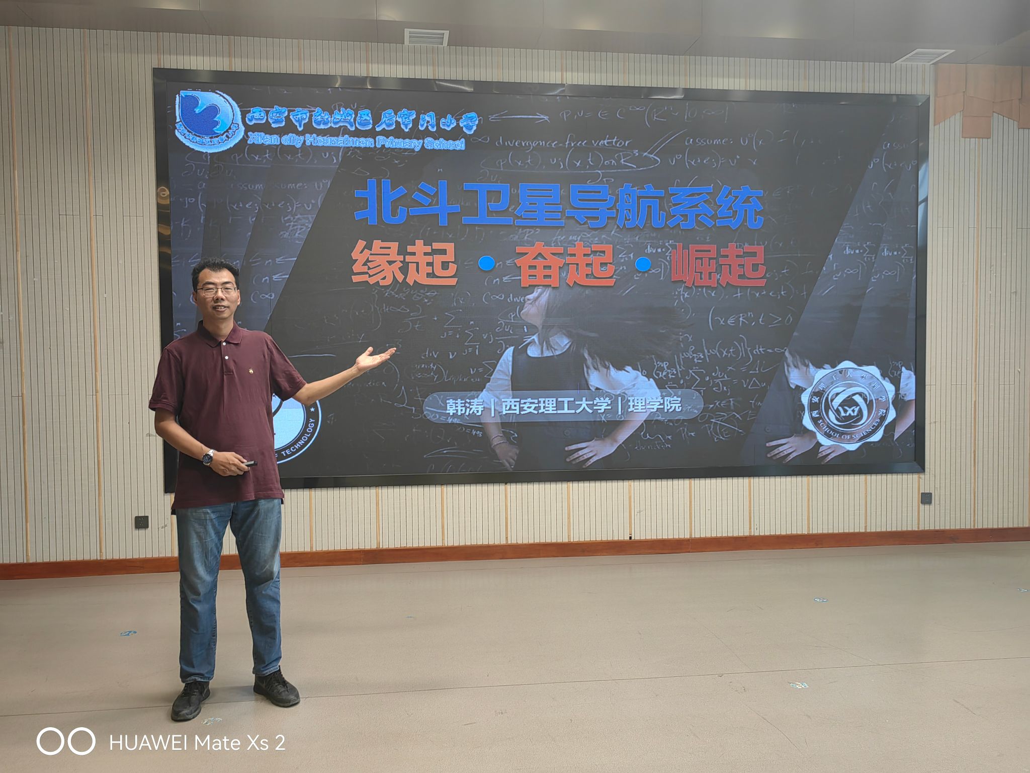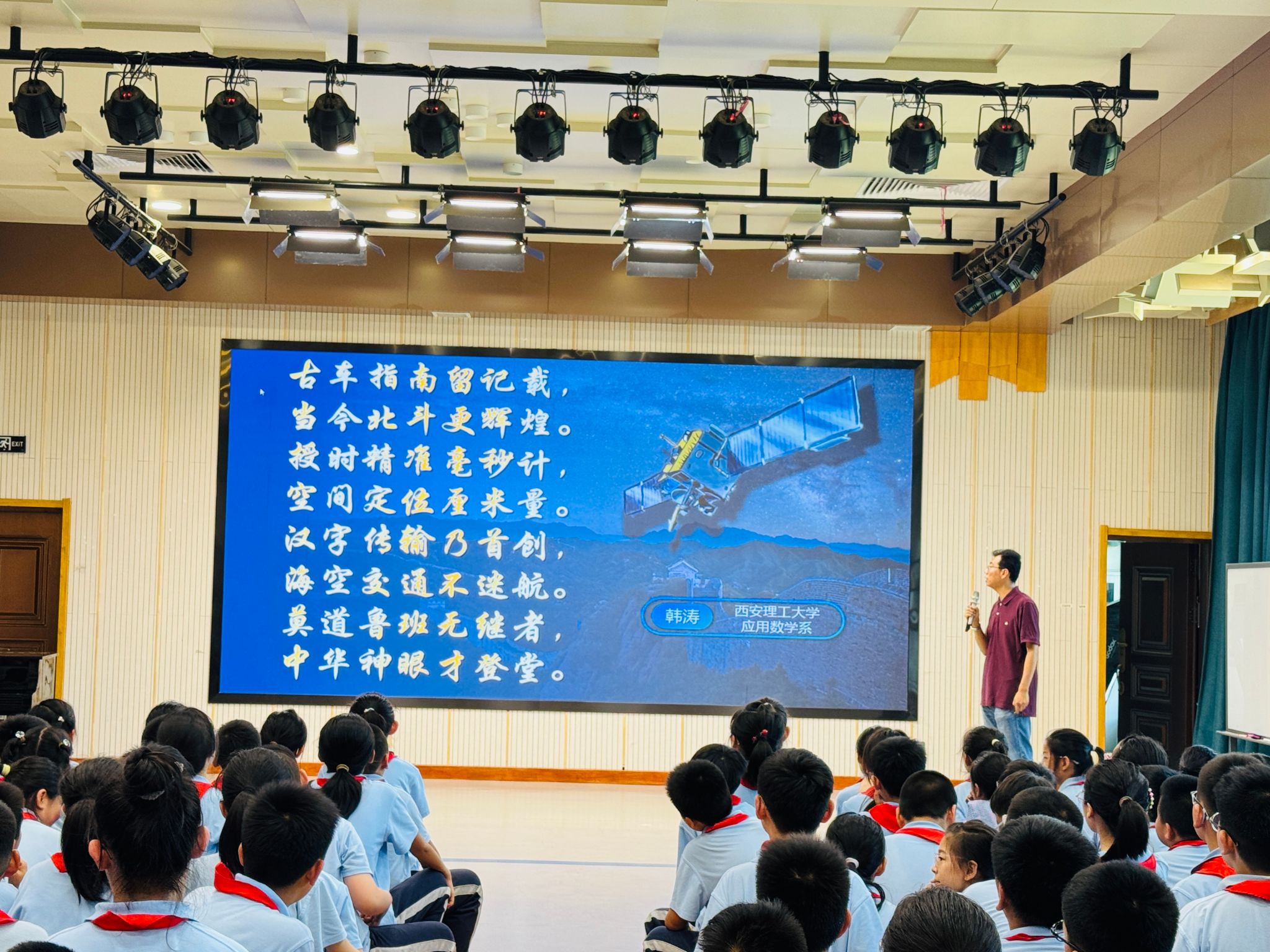 为充分发挥高校教育资源优势,深入基础教育一线开展科普教育,以实际行动弘扬科学精神、培育青少年科技素养。2025年5月28日,williamhill英国官网数学系韩涛老师受邀回到其母校——西安市新城区后宰门小学,以“北斗卫星导航系统:缘起、奋起、崛起”为主题开展科普讲座,通过生动讲解与趣味互动相结合的教学方式,系统阐释我国自主卫星导航技术的发展历程,在孩子们心中播撒科学火种,激发探索浩瀚星辰的求知热情。