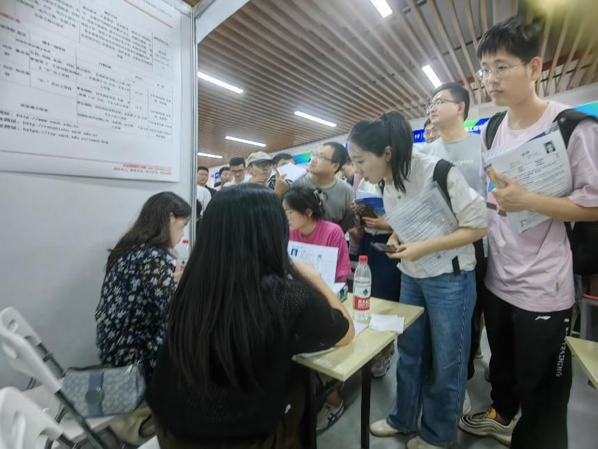 在招聘会现场咨询应聘者络绎不绝,咨询现场十分火爆。何钰老师和晏妮老师介绍了学科方向、特色专业、引进条件、考核要求等,并对博士生关切的问题一一进行了详细解答。现场不到1小时就收到了百余份简历。