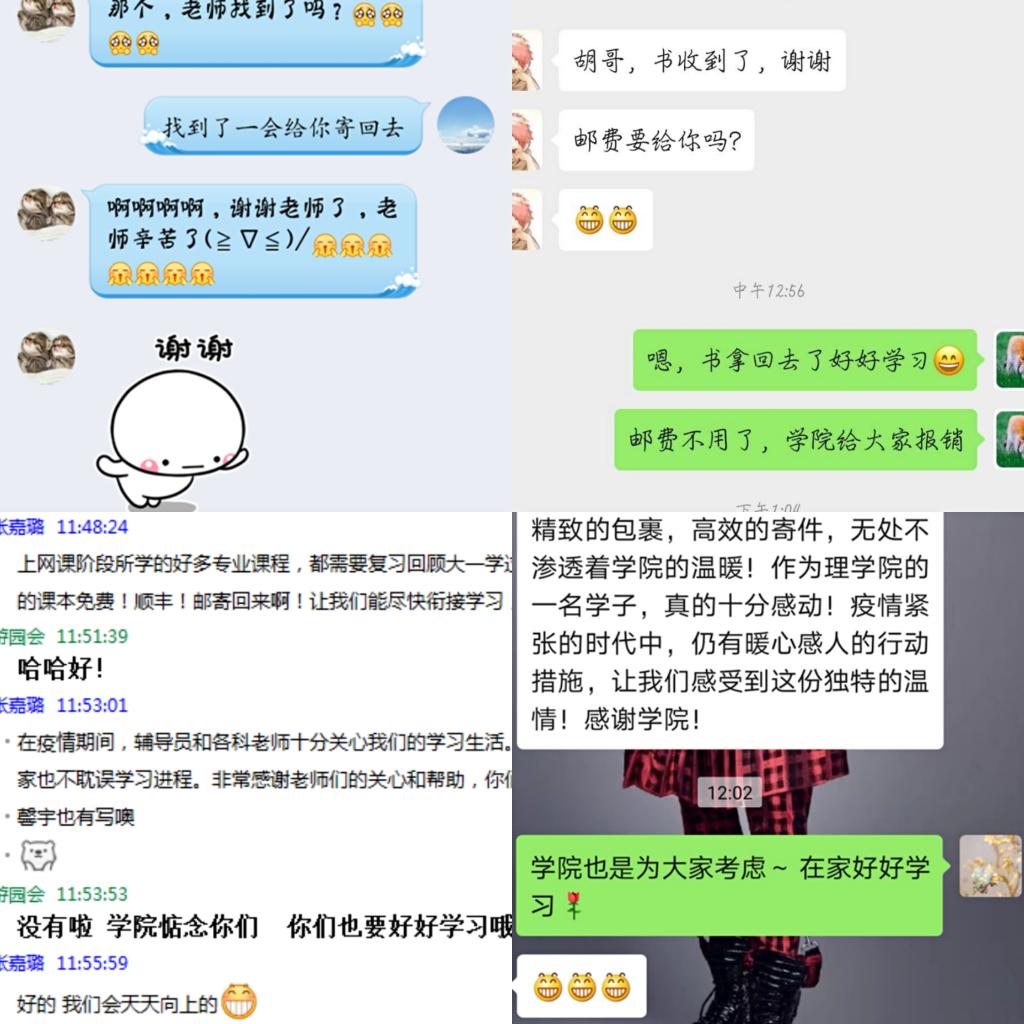 疫情期间,williamhill英国官网辅导员用心用情做好员工工作,践行“以员工为本”的初心,秉持一切为了员工的工作理念,主动承担起“快递员”的角色,通过多种方式为员工的居家学习提供有效保障,解决员工居家学习、备考复习和夏令营申请等活动中遇到的实际困难,受到了师生们的一致好评。