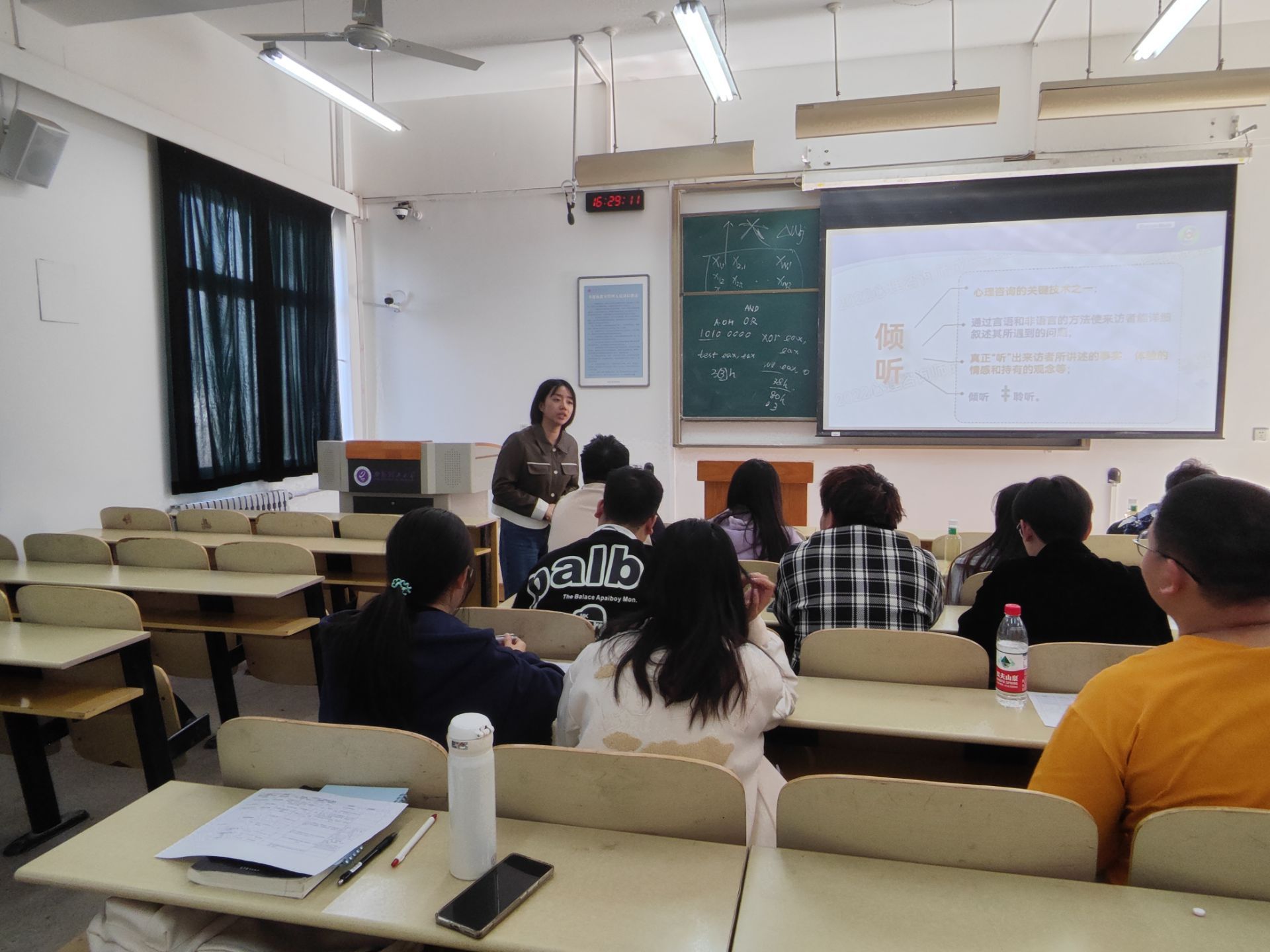 活动开始,赵海伦从“心理健康教育活动开展、朋辈辅导、心理危机”等方面帮助心理委员们进一步明确了工作职责,随后,赵海伦与心理委员们共同梳理了春季学期心理健康教育宣传季的工作重点,并进行了工作安排。最后,赵海伦以“真诚 尊重 共情”为主题向心委们介绍了心理疏导和沟通咨询的技巧,从“恰到好处的安慰”和“行之有效的沟通”两方面对心理委员进行了赋能。