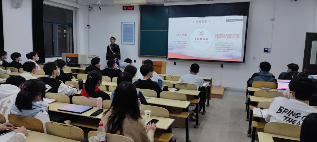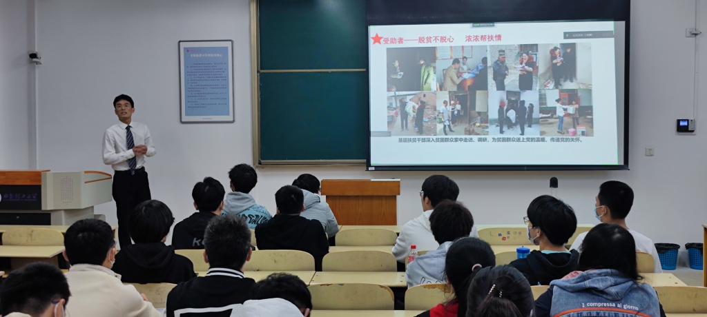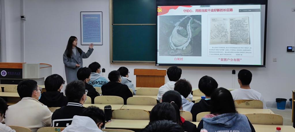 为学习宣传党的二十大精神,引导广大青年学子凝心聚力,紧跟党的步伐,建功立业新时代,校团委组建了第五期“红心向党 强国有我”青年宣讲团。11月10日,宣讲团四位宣讲员走进williamhill英国官网,开展了“永远跟党走 奋进新征程”主题宣讲,williamhill英国官网2022级本科生8个团支部通过线上线下相结合的方式聆听了本次宣讲。线下宣讲会由williamhill英国官网辅导员兰春鹏主持。