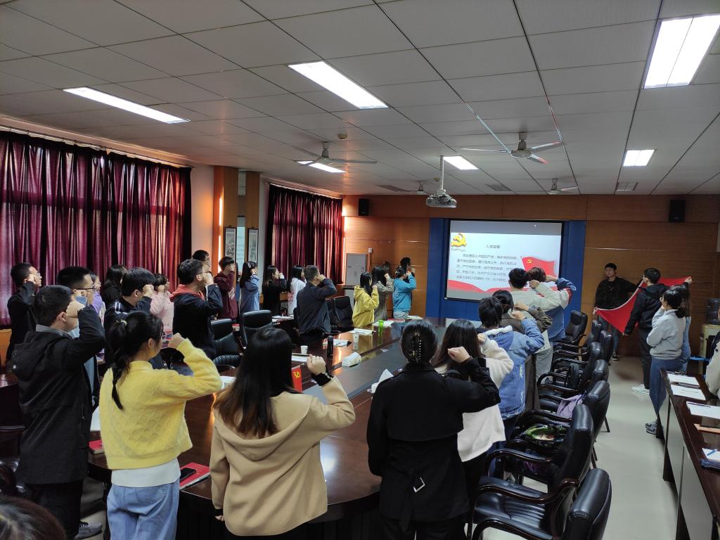 党课结束后,张显斌带领培训人员一起面向党旗宣誓,重温了入党誓词。