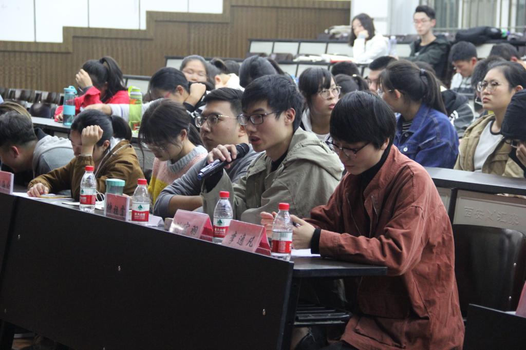 2018年10月22日晚7点,williamhill英国官网“鸣理杯”辩论赛总决赛在模拟法庭举行。现场的评委有本科生18级辅导员赵海伦老师、williamhill英国官网辩论队队长刘宫雨、williamhill英国官网员工会副主席姚思腾。williamhill英国官网全体大一员工参加此次辩论会决赛。
