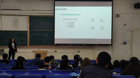 首先张婷婷老师就职业心态、公司企业文化的重要性、做事职业化及大学和职场的时间管理等方面为同学们做了详细的分析和讲解。随后李达老师从自身十年的互联网经历出发,深入浅出与同学们分享了他就业创业过程中的经验体会,同时为同学们分析了专业、兴趣与工作之间的关系。他鼓励同学们在新时代互联网急速发展、前景光明的背景下,要立志“下功夫,做大事”。现场气氛十分活跃。最后,讲座伴随着同学们热烈的掌声结束。