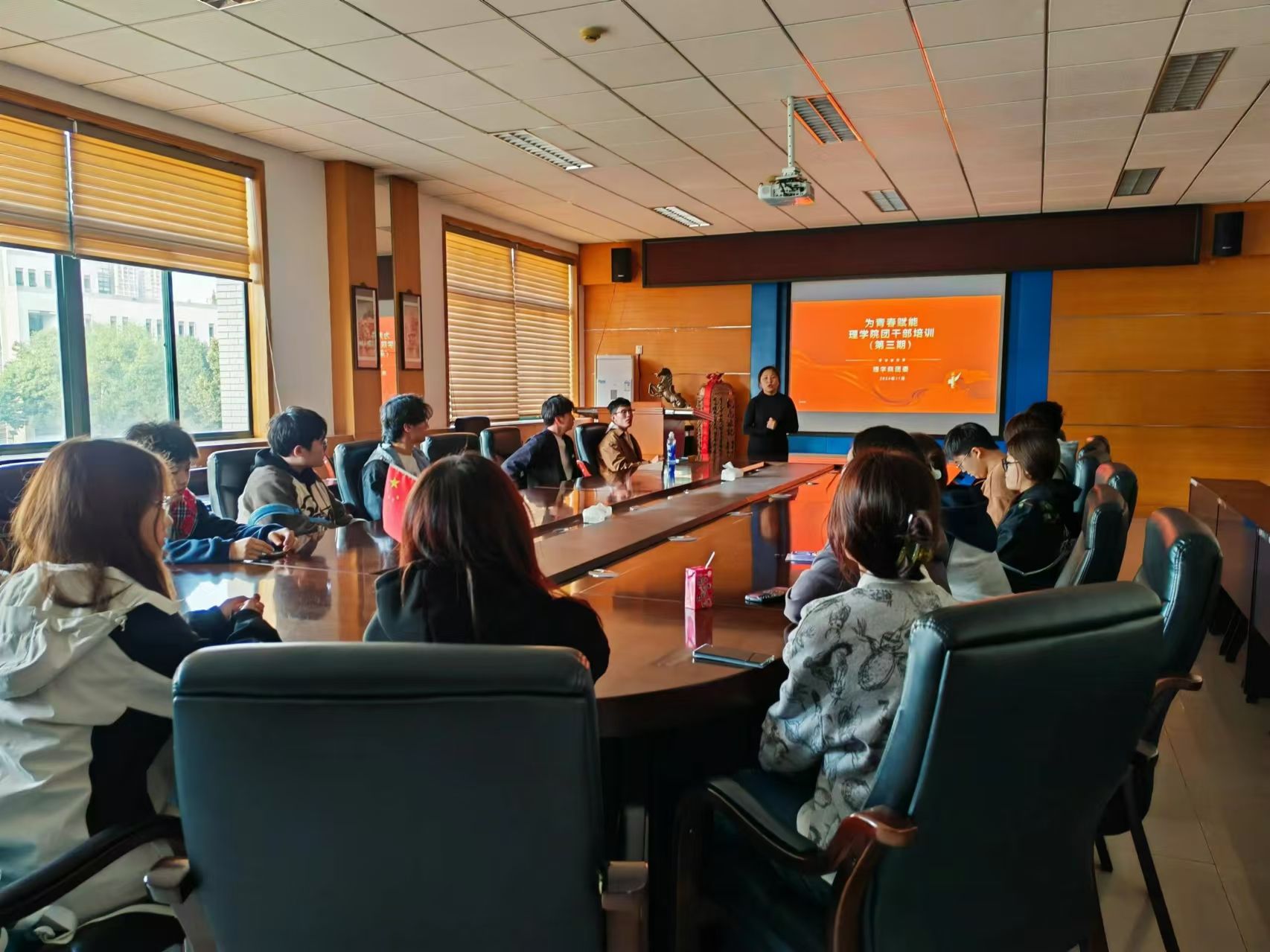 组织辅导员班级导师开展学风建设主题班会、年级大会,围绕学习方法交流、学习态度端正、学业规划制定、严肃考风考纪等主题展开交流讨论,形成优良班风学风。实施领导干部联系班级制度,了解员工学业发展个性化诉求并提供针对性指导引导员工自觉践行“祖国、荣誉、责任”的校训,争做心怀“国之大者”的时代新人。