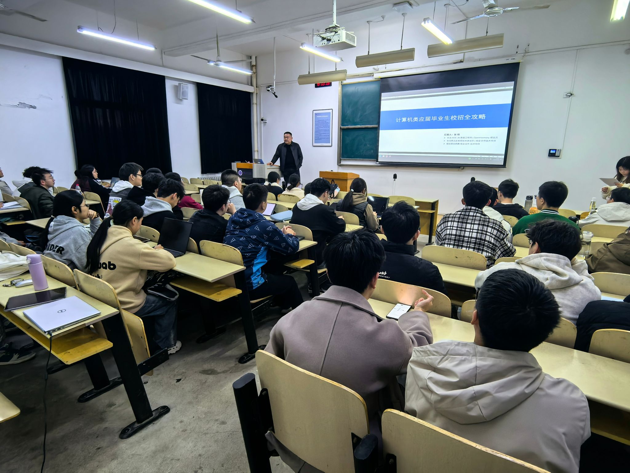 活动现场气氛活跃,在问答环节同学们就"考研方向选择""实习机会获取""算法岗职业发展路径"等问题踊跃提问。通过讲座员工直观意识到数学不仅是理论工具,更能直接驱动技术创新,对跨领域发展有了更清晰的规划。