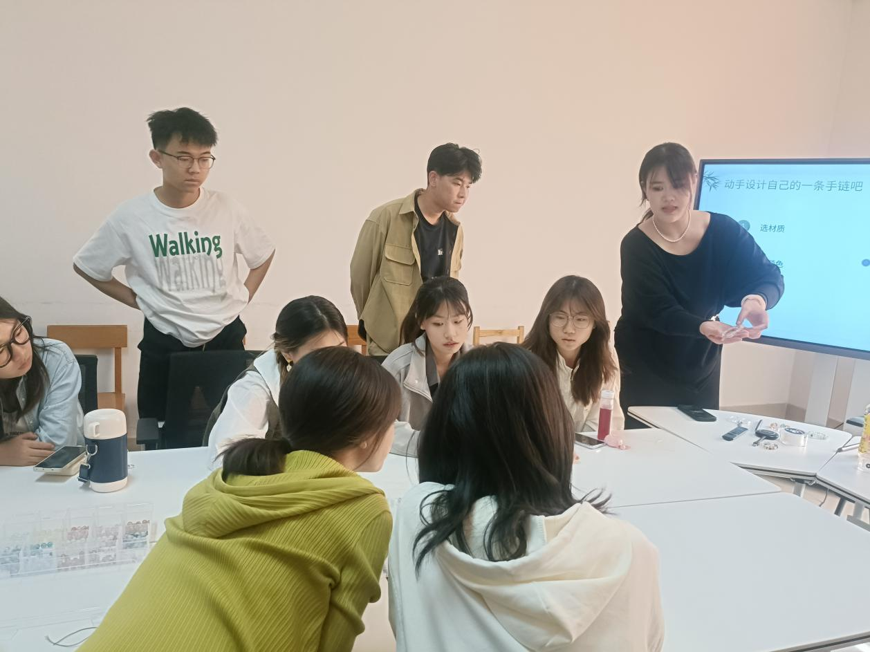 活动现场邀请了持有珠宝鉴定资格证书的22级制药工程专业员工张怡雪担任主讲人,详细介绍了串手串这一传统技艺的历史渊源与文化内涵,从选材、设计到编织技法,一步步耐心演示。同学们认真聆听,随后迫不及待地动手实践。五彩斑斓的珠子在大家指尖穿梭,不一会儿,各具特色的手串雏形初现。大家相互交流、分享创意,现场气氛十分活跃。