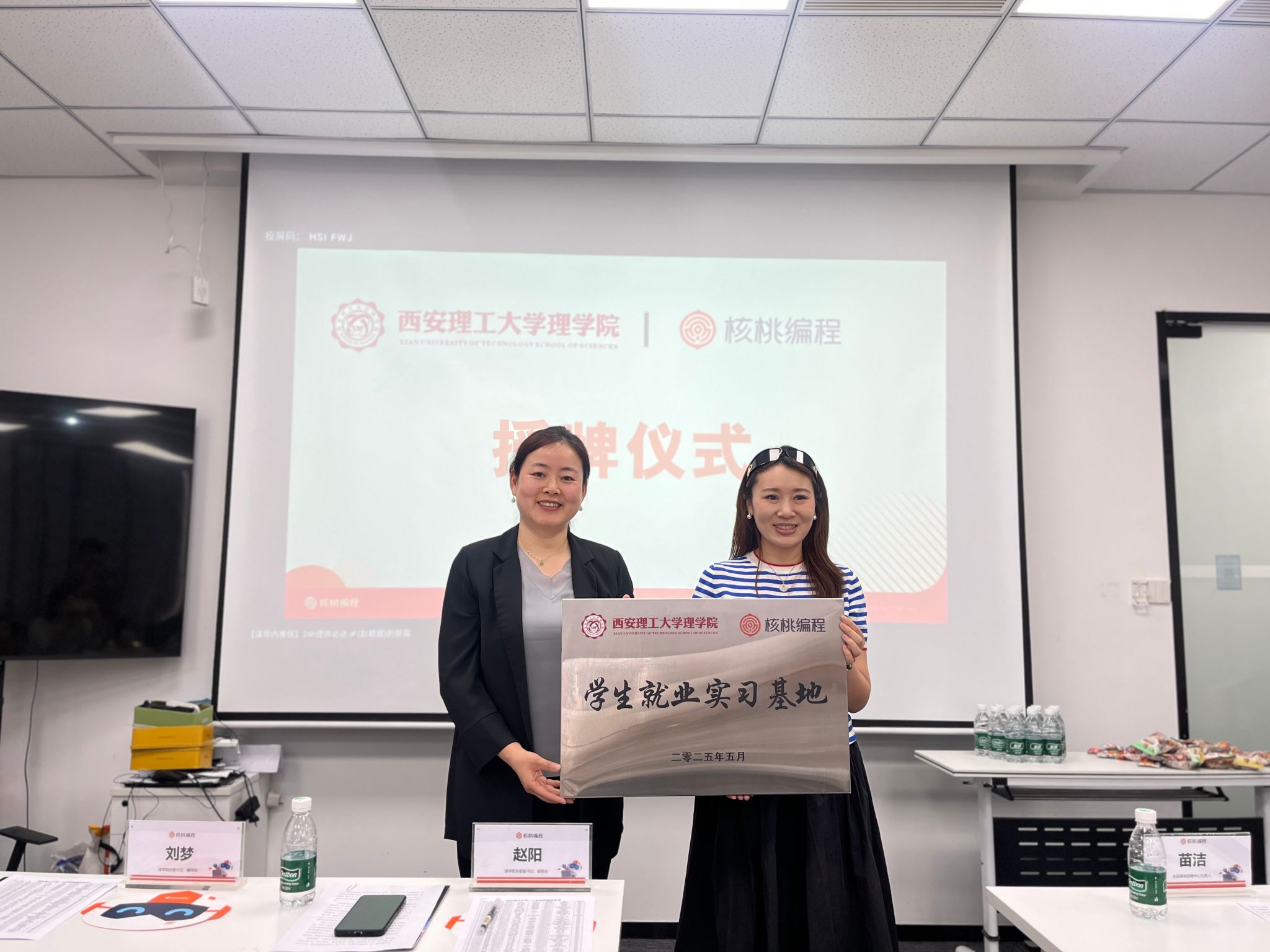 活动开始,师生们参观了核桃编程的办公区域与工作环境。随后,赵颖晨介绍了公司及岗位设置情况,williamhill英国官网2025届毕业生马颖分享了企业实习情况,帮助师生们对其业务范畴与人才需求有了清晰认知。接着,赵阳介绍了williamhill英国官网的学科专业、团队力量、人才培养等情况。在提问交流环节,双方就实习就业、课程合作等内容展开深入探讨,为合作奠定良好基础。最后,赵阳为核桃编程授予实习就业基地牌匾,双方合影留念,14名25届毕业生进行了现场面试。