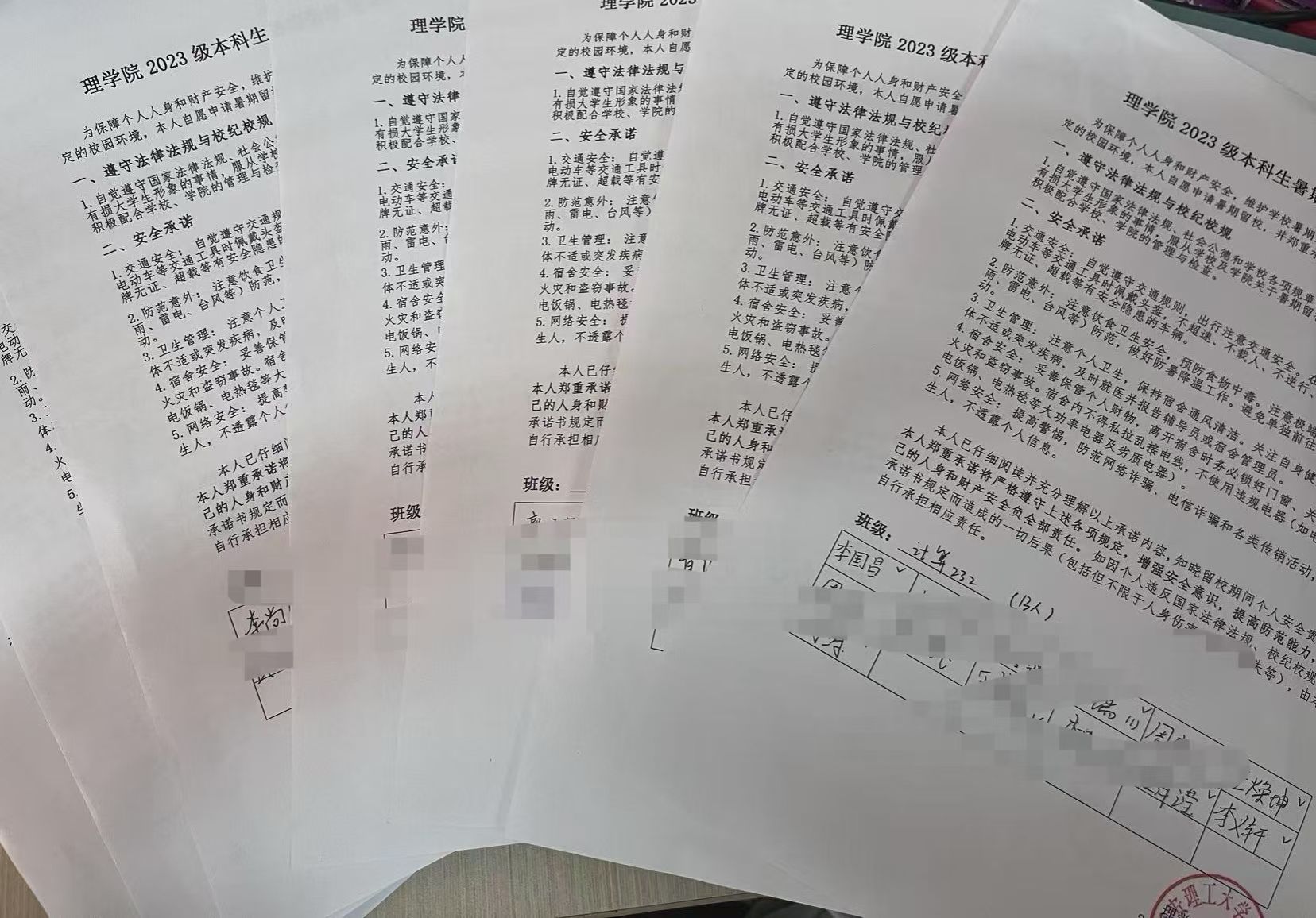 辅导员对留校期间的日常管理与服务工作进行了说明,并在每个班级设立了2名暑期留校安全员,要求同学们务必保持通讯畅通,遇到任何问题及时与老师和班级安全员沟通反馈。同时,鼓励同学们合理规划假期时间,在专注学习、竞赛的同时,也要注意劳逸结合,适当进行体育锻炼,保持良好的生活习惯。会后同学们签订了《安全留校承诺书》并建立了留校员工信息沟通群。